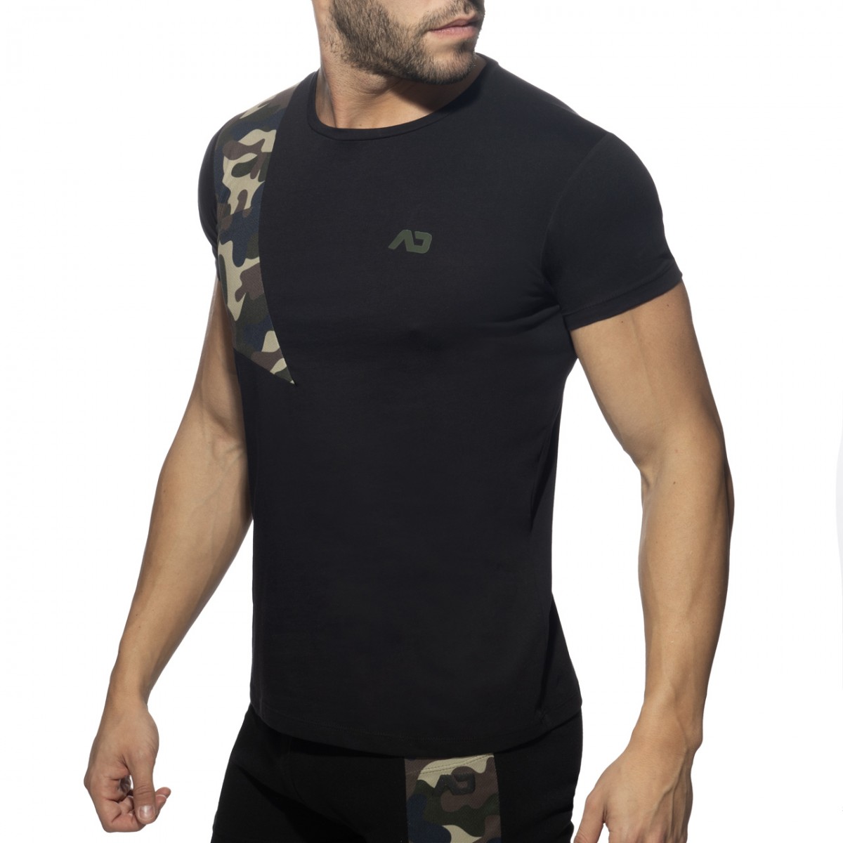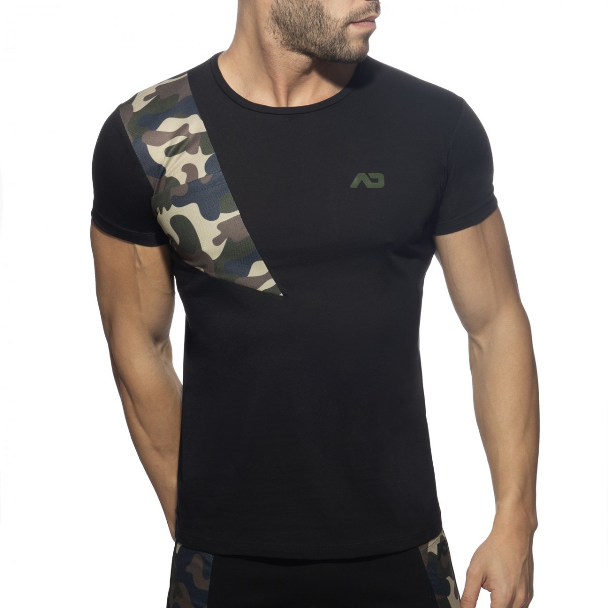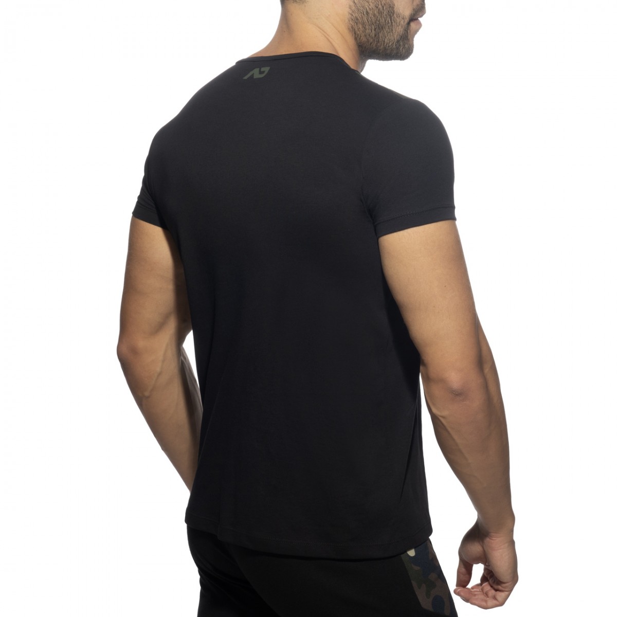 Cotton t-shirt made of finest fabrics: 90% Cotton – 10% Polyester. AD logo printed on the left chest and behind under the neck. Contrast patch on the right shoulder with little pocket.