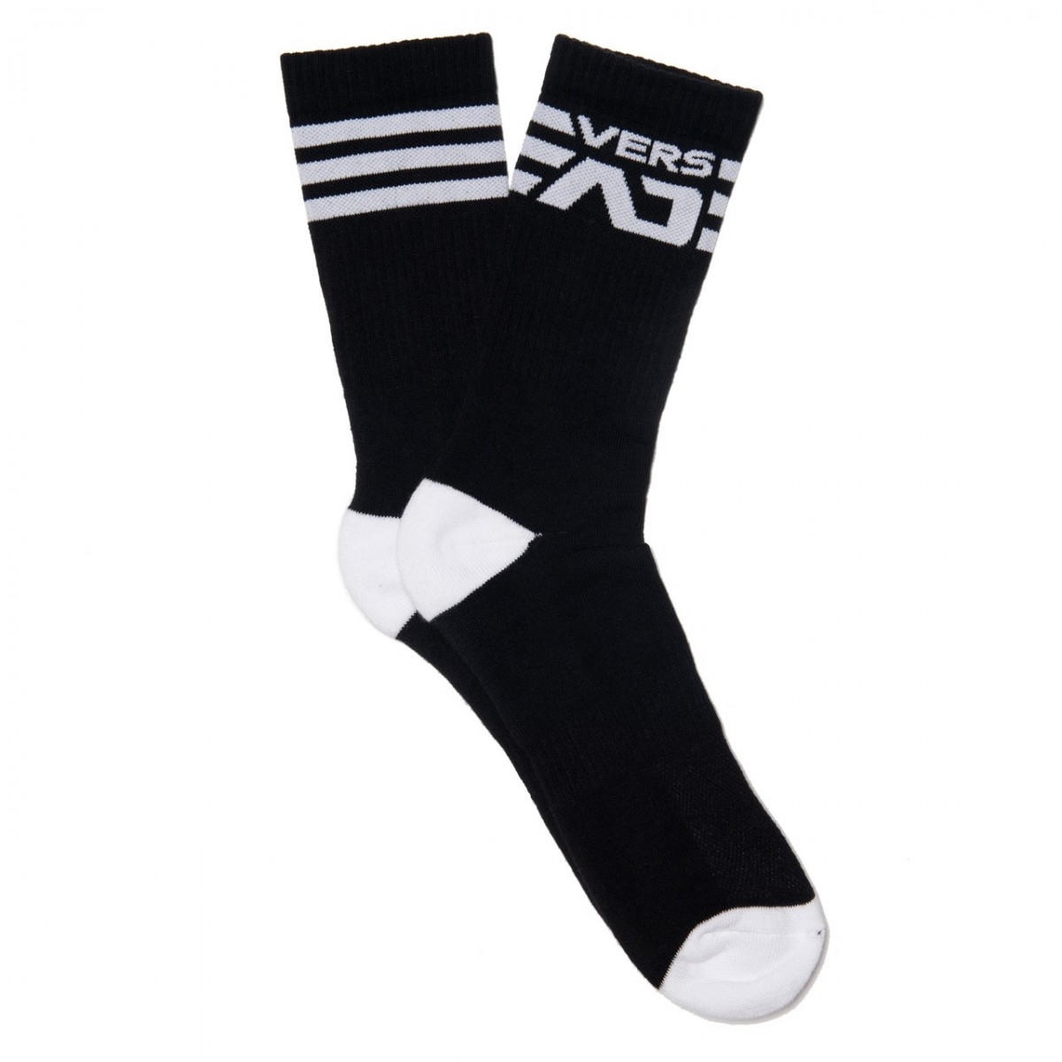 Socks made of 71% cotton, 14% elastane, 9% polyamide and 6% lycra. Horizontal stripes on the top and “VERS” and AD logo on the external sides.