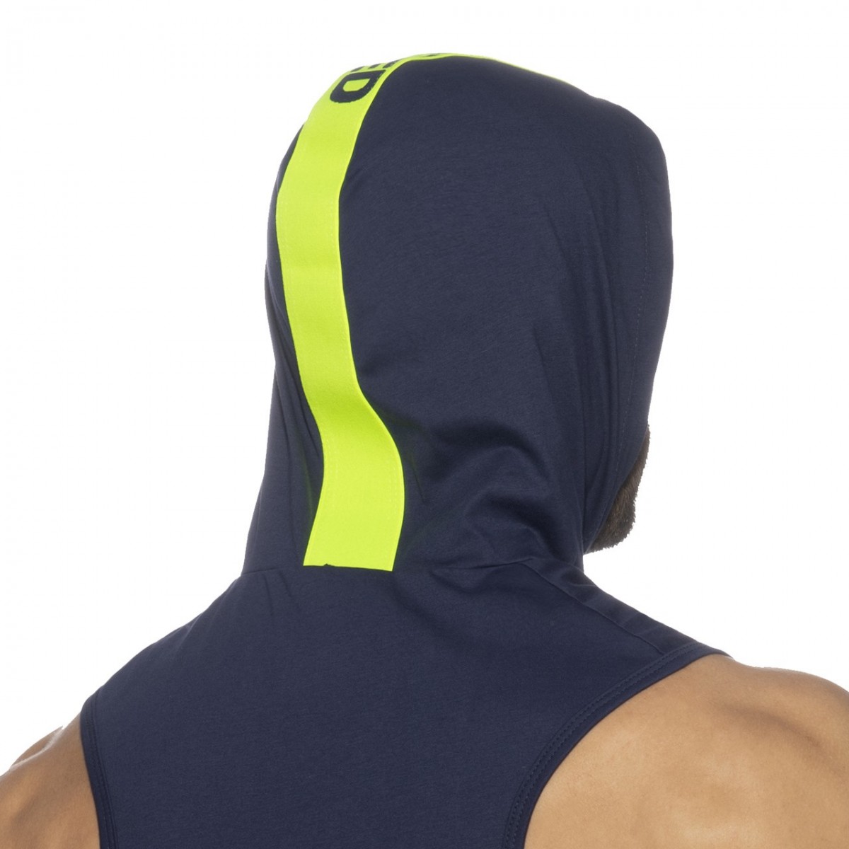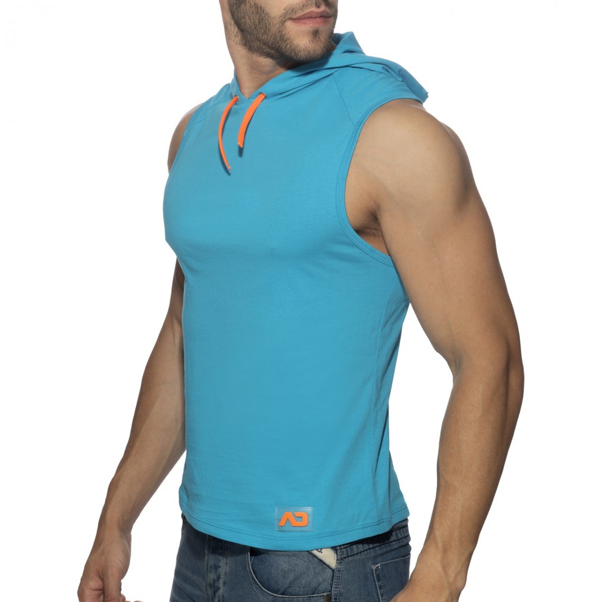 Sleeveless hoody made of finest 100% Cotton. ADDICTED band in the middle of the hood and AD silicon logo en the lower left front side. Frontal cords on the neck to adjust it. Lower front side in U shape and lower back side in V shape. Your best option for hot summer days!