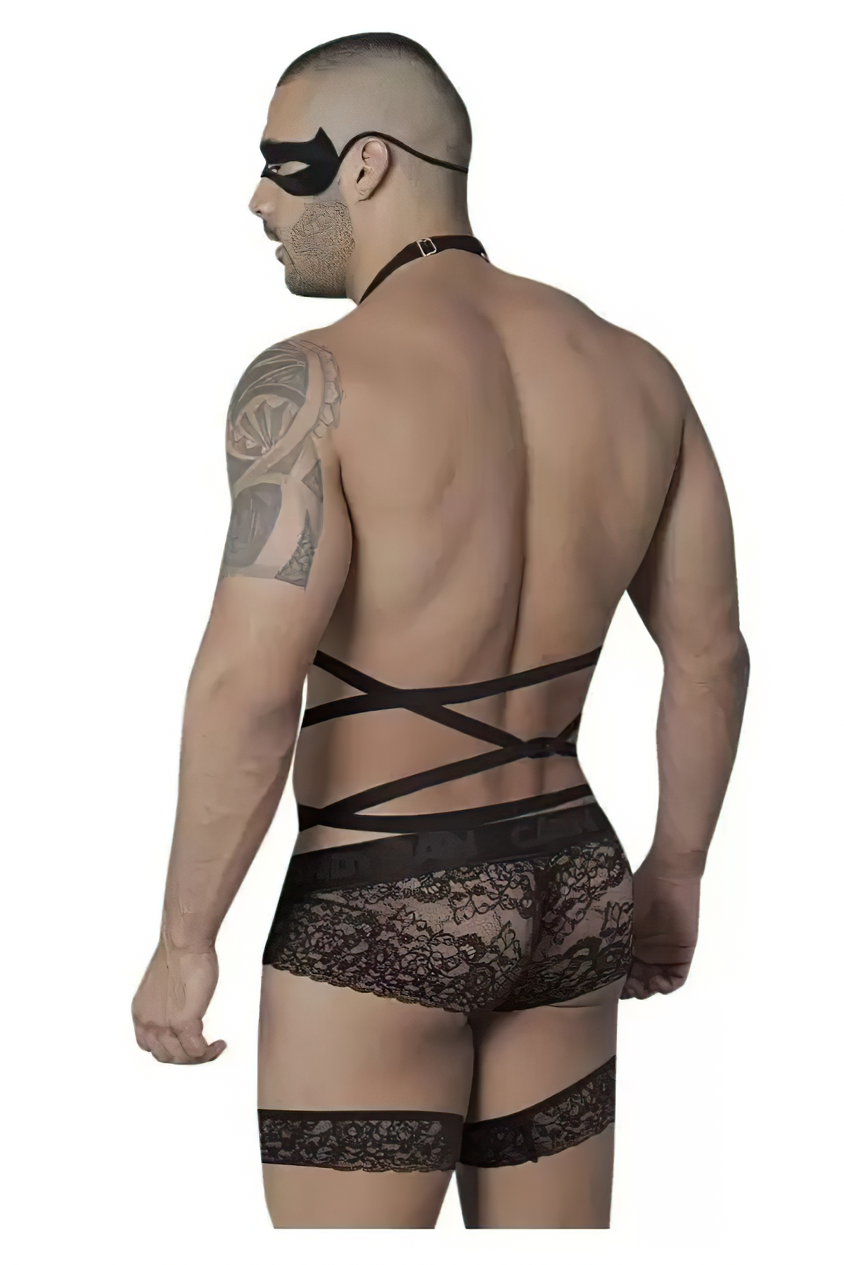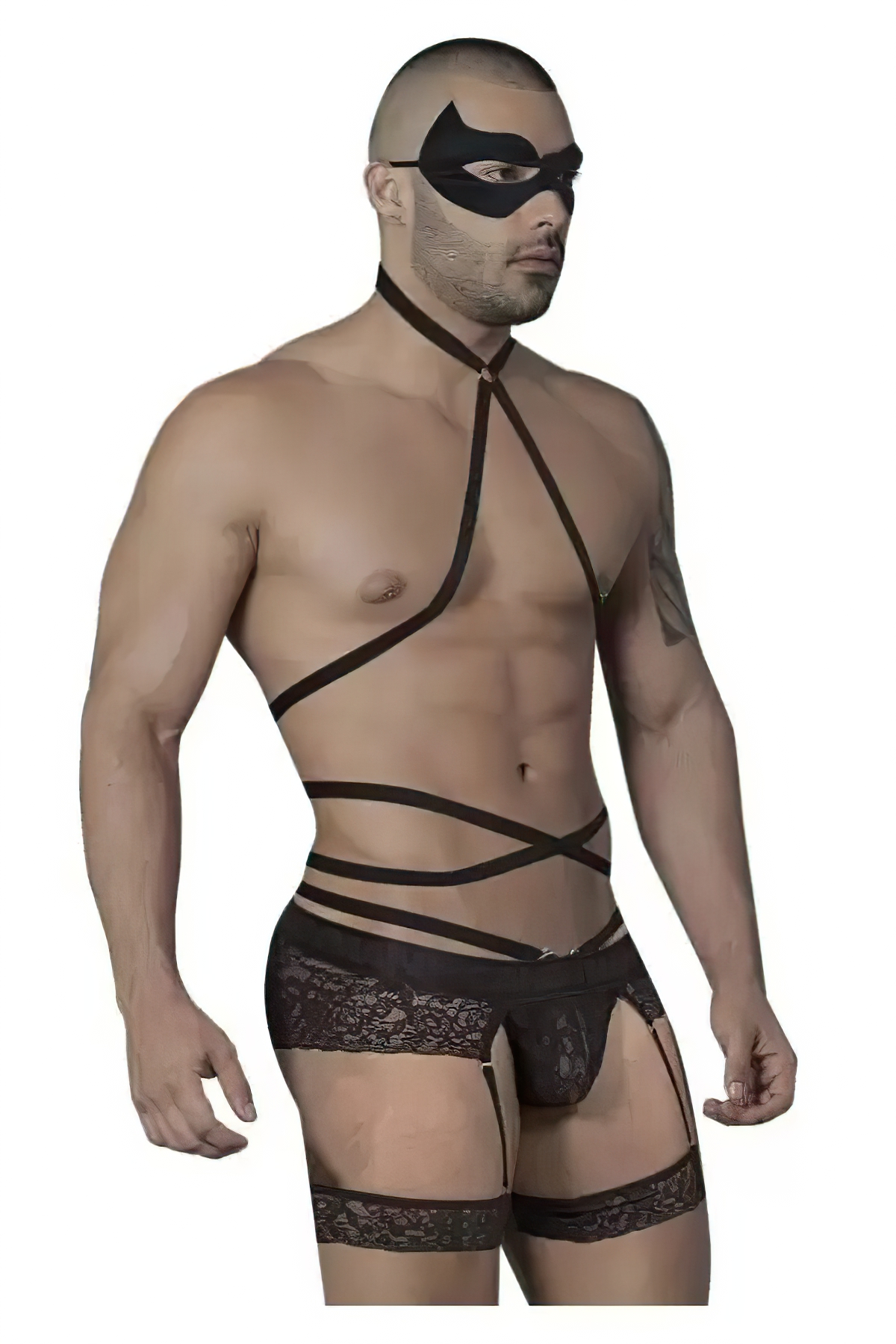 CandyMan 99483 Lace garter Bodysuit explore your wild side with this amazing piece made in soft and smooth lace fabric, with straps that wrap your body as soft as a glove, round high neck that offers support and a sexy line in your figure. Full coverage on the back and a sexy cut out in the front, with sexy leg straps that take lingerie to another level. The mask gives you a mysterious look if you wanna feel playful on a special night.