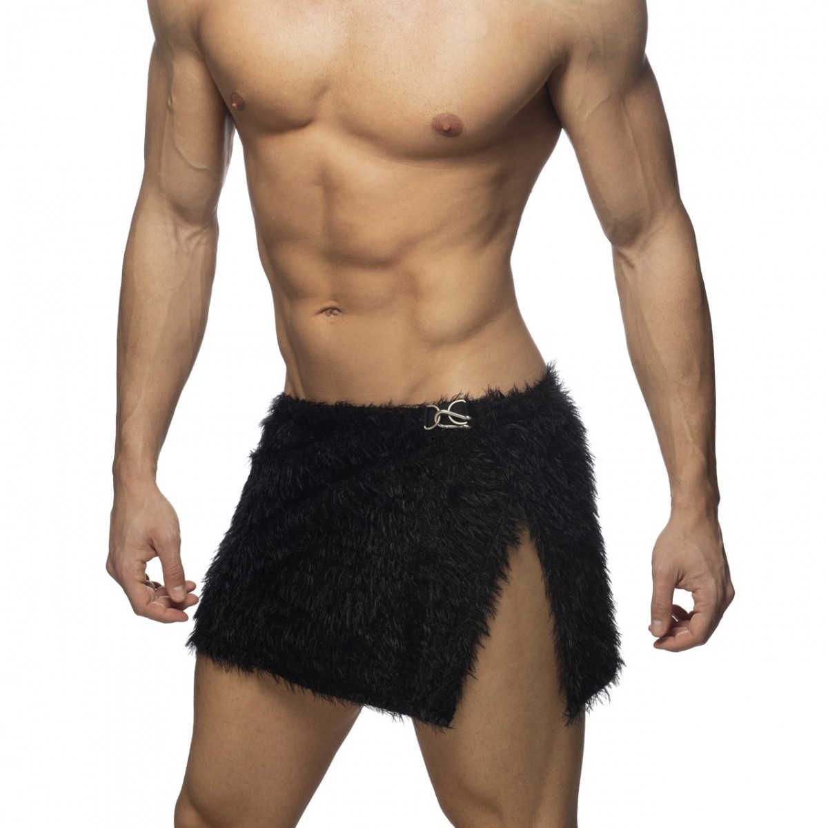 Sexy skirt made of a special fabric: 45% Polyamide, 45% Cotton, 10% Elastane. Wide opening on the side. Main fabric made of artificial feather and stainless carabiner for best adjustment. AD logo on the front right low side.