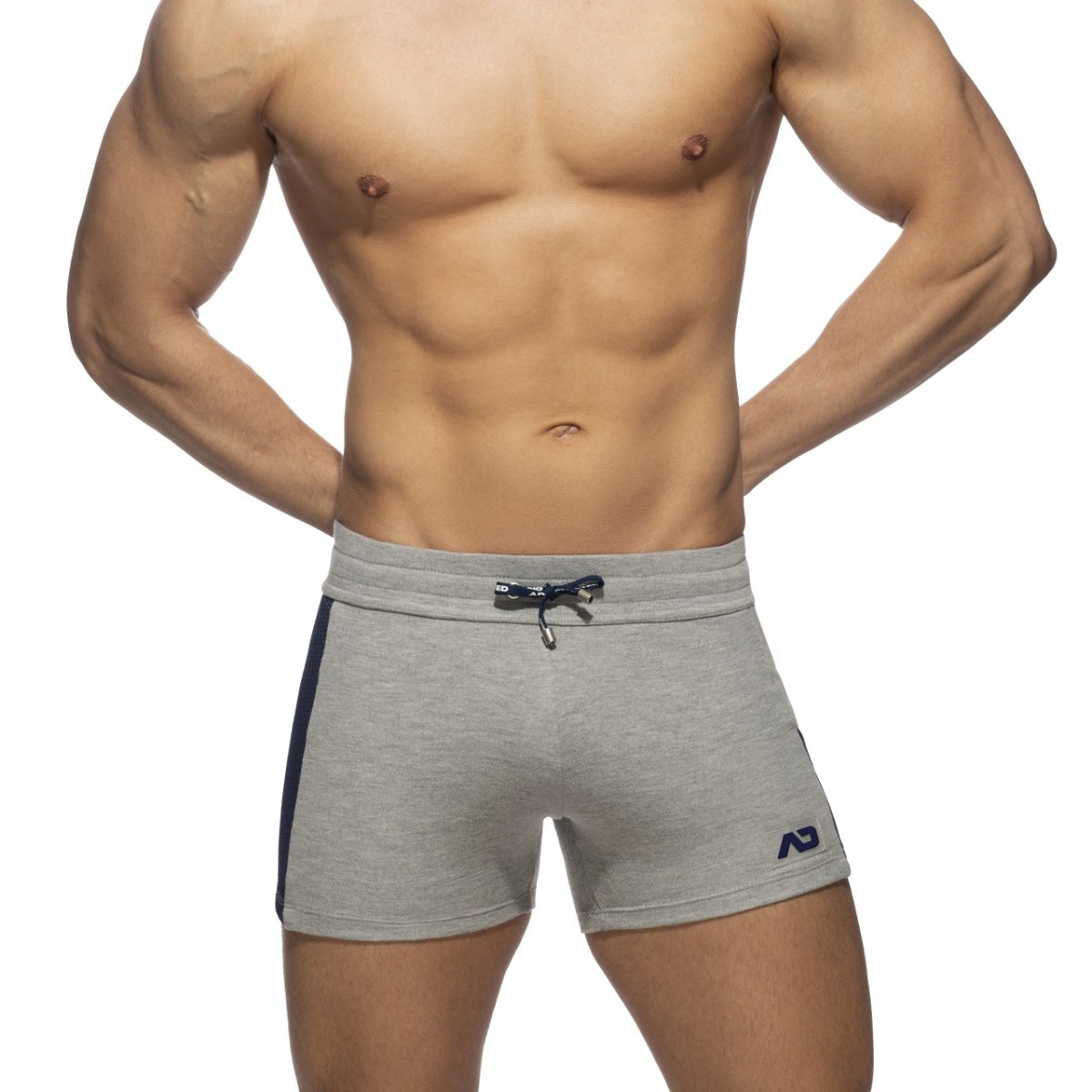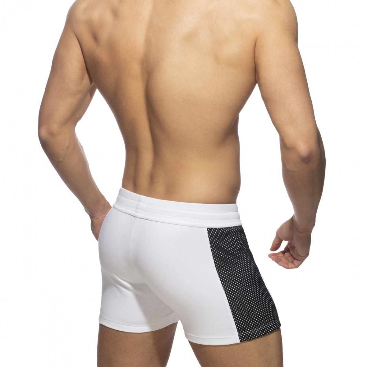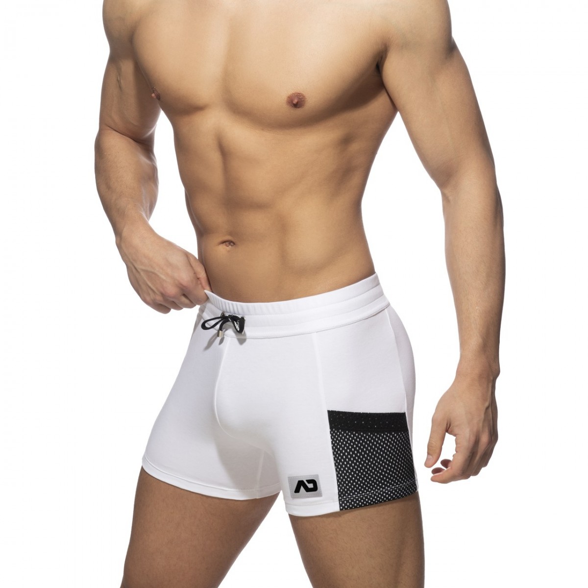 Sportive shorts made of finest fabrics. Mesh stripe on the right side contrasting and mesh pocket on the left side contrasting. AD silicon logo on the left leg and front laces for best comfort.