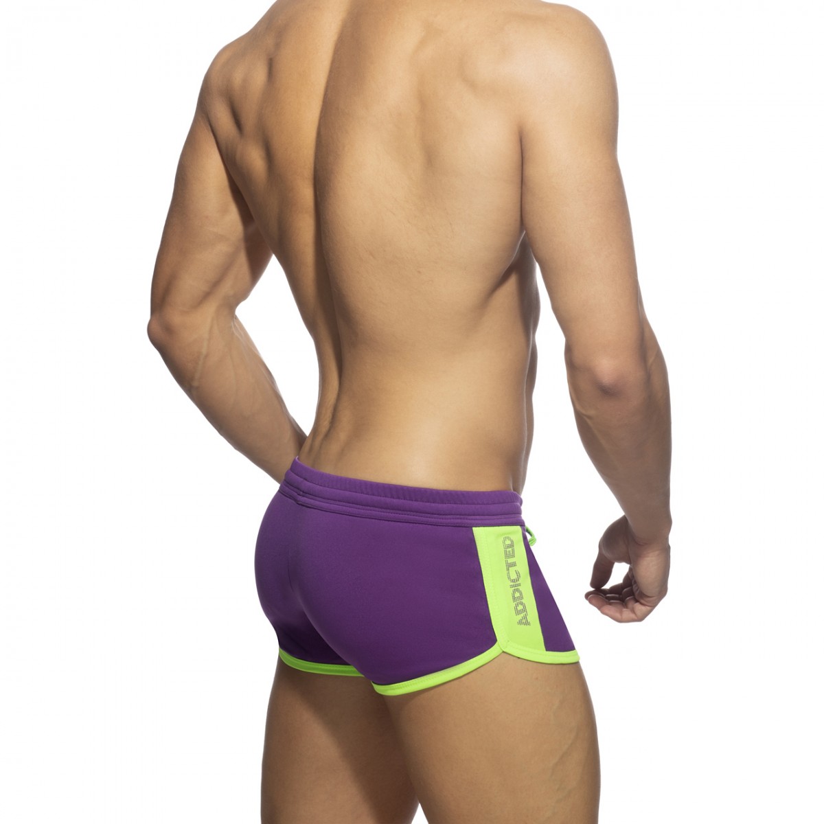 Sexy low cut shorts made of polyester 100% fabric. Double side contrasting with ADDICTED printed vertically. KANGO technology for best support end enhancement. Thanks to our KANGO technology underwear underneath is no needed. Contrast color on the sides and ribbons and cords. Frontal cords for best adjustment.