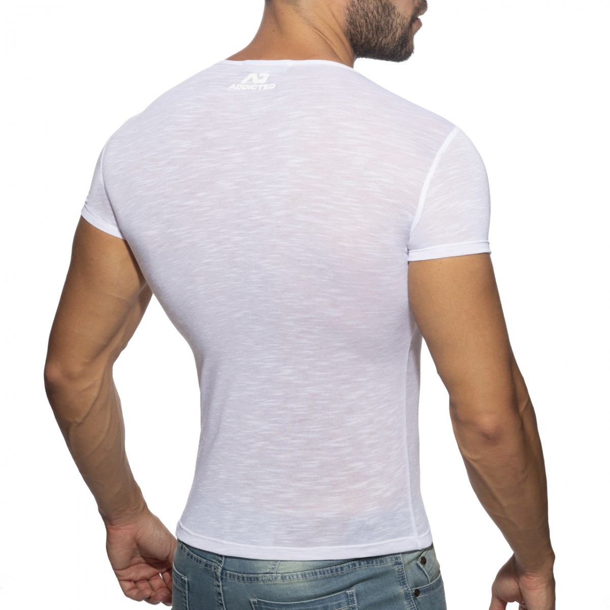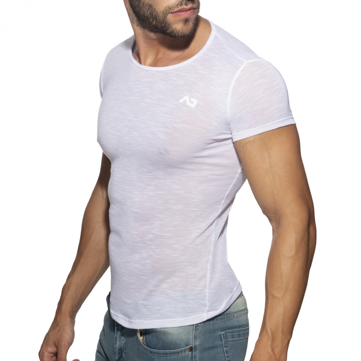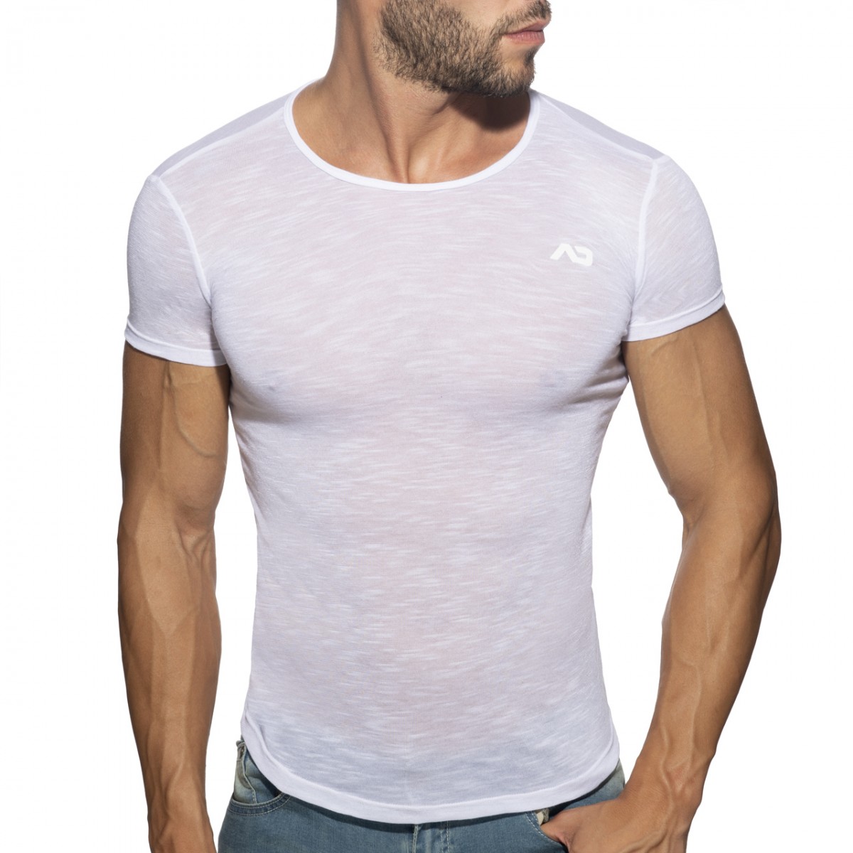 New fresh short sleeves T-Shirt made of new flame fabric. Composition: 100% Polyester. C-through sexy fabric very fresh and breathable. AD printed logo over the left chest. AD ADDICTED printed logo on the upper back side.