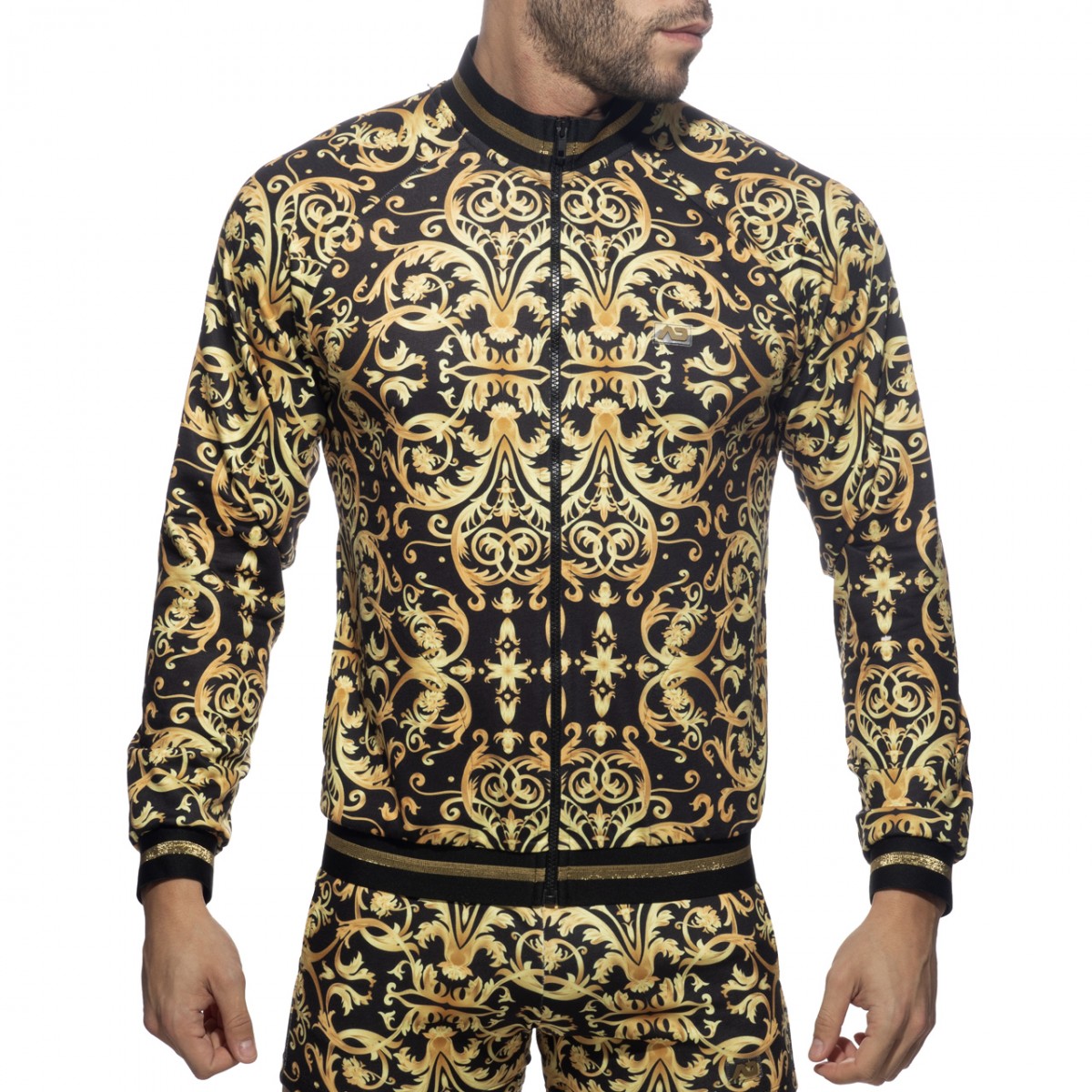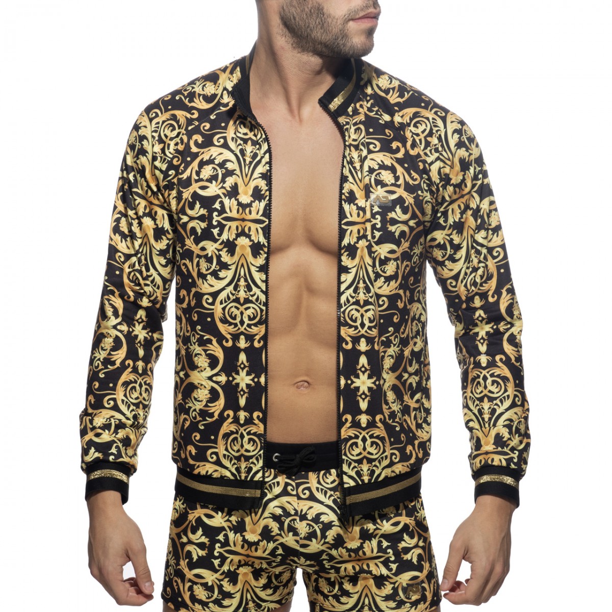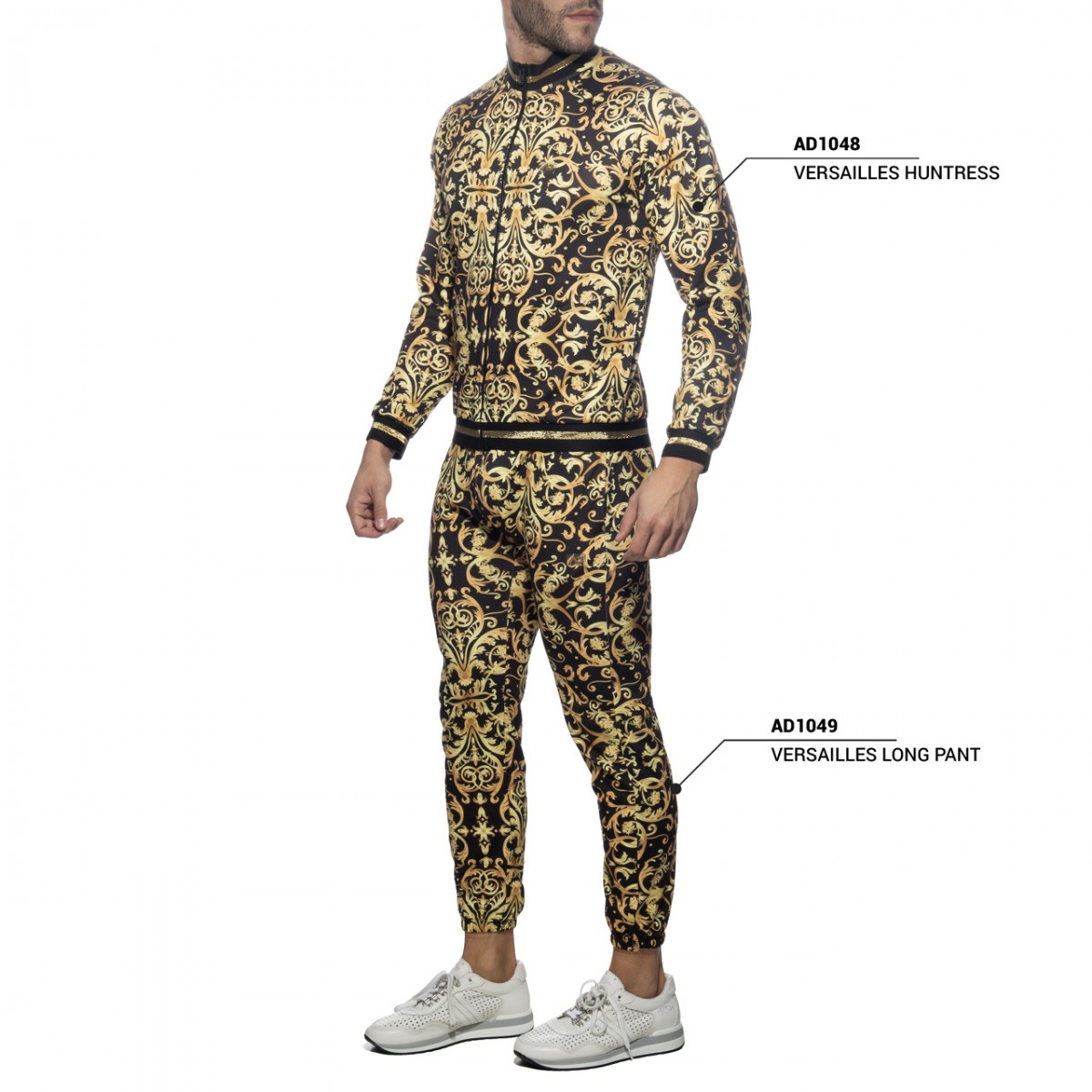 Versailles print huntress made of finest italian fleece: 95% Polyester – 5% Elastane. AD silicon logo on the left chest. Two pockets on the sides and frontal zip for best adjustment.